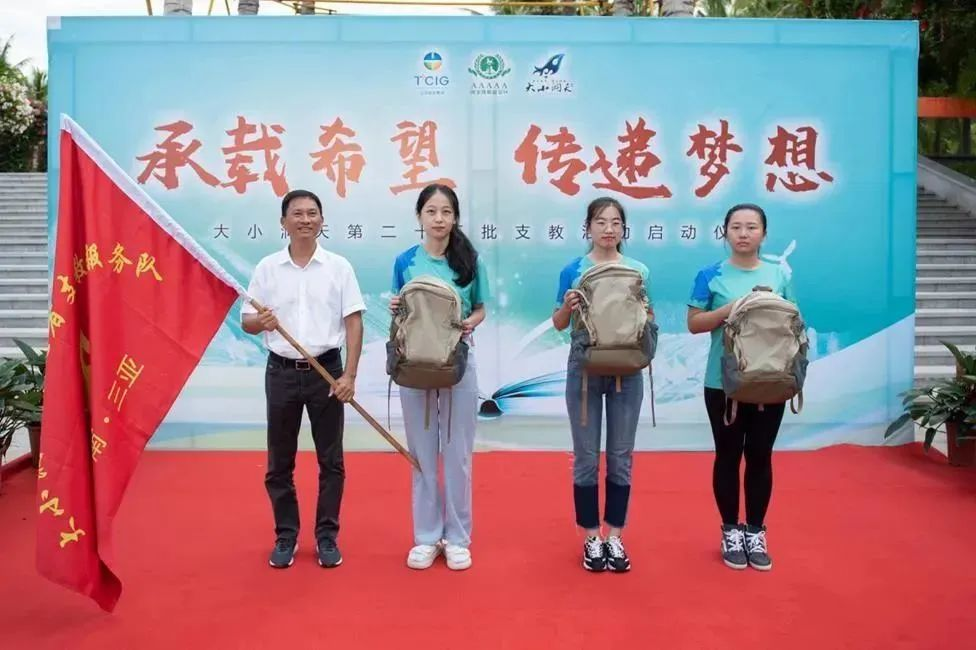 2023年9月,在教师节来临前,三亚大小洞天景区举行了第二十五批支教活动启动仪式。三名支教队员高兴南、唐源、李心蕊接过接力棒,即将远赴新疆喀什召开为期一个学期的支教工作。13年薪火传递,大小洞天“支教之家服务队”坚守初心、奋发不怠,他们深入新疆塔什库尔干县乡镇学校,深入到教育最需要的地方,以爱浇灌静待花开。